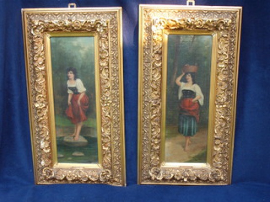Para obrazów olejnych : z dziewczyną w strumieniu/