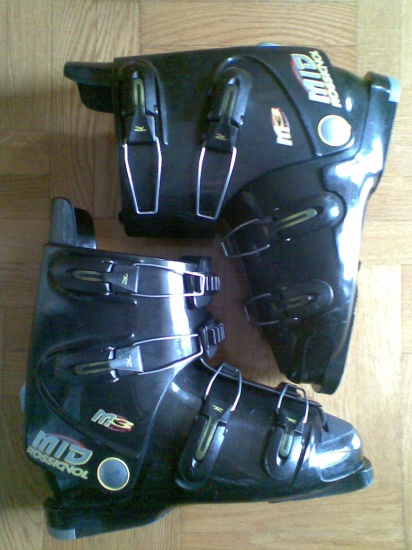 Buty narciarskie są w 100% sprawne i kompletne. Noszą normalne ślady użytkowania. Ich rozmiar…coż, ja ich używałem będąc posiadaczem stopy o rozmiarze 41-43 centymetrów.
