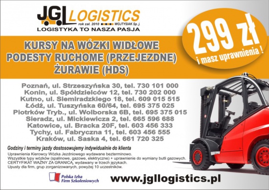 JGL Logistics Poznań ul. Strzeszyńska 30 tel. 730 101 000 Zapisy codziennie.